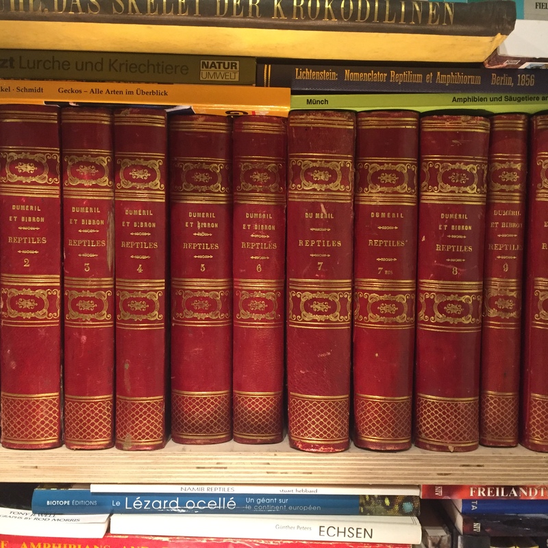 Duméril, A.M.C. & G. Bibron. Erpetologie Générale ou Histoire Naturelle Complete des Reptiles. Tafeln: 59, 63, 70, 72, 75, 76, 77, 78, 79, 80, 81, 82, 84, 77bis, 79bis, 83bis, 93, 94, 95, 97, 98, 99, 100, 101, 102, 103, 104, 105, 106, 107, 108 (31 Tfln.)